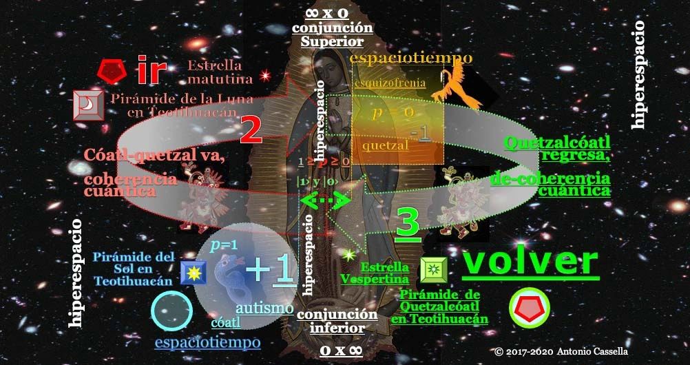 En fin, como puerta cerrada la nada de la Coincidencia es el límite de la coherencia de la 2da atención. Y como puerta abierta es el comienzo de la decoherencia de la 3ra atención. La próxima sección muestra el viaje de ida (coherencia cuántica) de Quetzalcóatl y su regreso (decoherencia) a una faceta autista renovada.