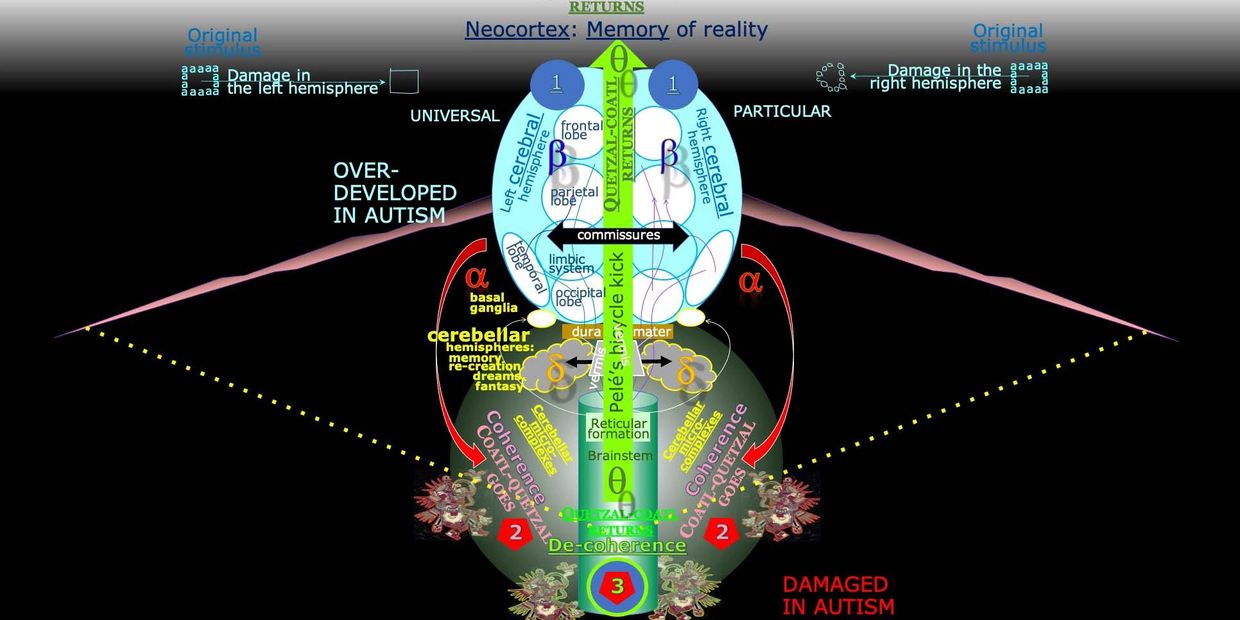 The fact that some mentally-retarded autistics have a bigger-than-normal head and cerebral cortex implies that their diminished ability to link known concepts obeys a central damage of their cerebellum/brainstem. If we take them as our best students, autistics may become our best teachers.