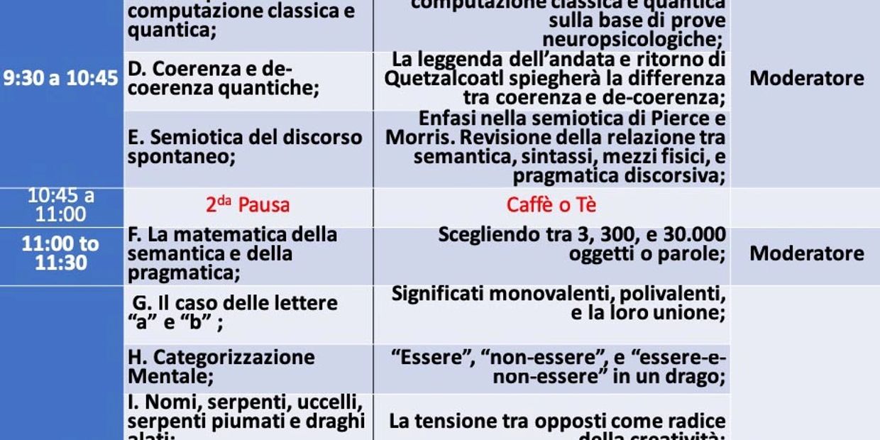 Dopo aver annotato e messo tra parentesi nella parte B il quadro di conoscenze dei partecipanti sulle radici cognitive del dialogo spontaneo, la parte C del laboratorio si appoggerà al comportamento degli autistici in prove neuro-psicologiche essenziali dello sviluppo per dimostrare la realtà della separazione tra computazione classica e computazione quantica. La parte D si rifarà alla leggenda del viaggio di andata di Quetzalcoatl a Venere e del suo ritorno sulla Terra per spiegare la differenza tra coerenza e de-coerenza quantiche.